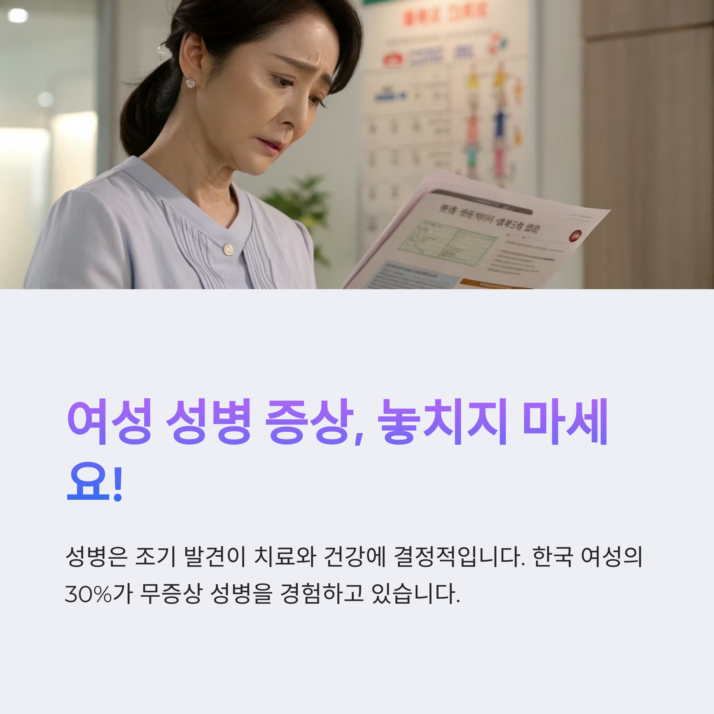 오늘은 여성 성병의 증상과 조기 검진의 중요성에 대해 알아보겠습니다.
